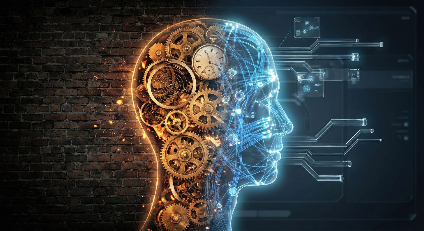 And now, as artificial intelligence ramps from novelty into infrastructure, that bridge generation is witnessing yet another threshold. This one may matter even more than the shift from analog to digital. Because the internet didn’t just change the speed of information. AI is beginning to change the location of thinking. The cognitive load we used to carry in our heads is being externalized into systems that can draft, summarize, design, propose, and predict.